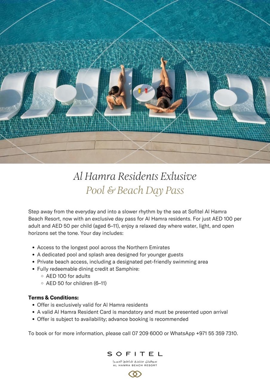 Pool & Beach Day Pass @ Sofitel Al Hamra Beach