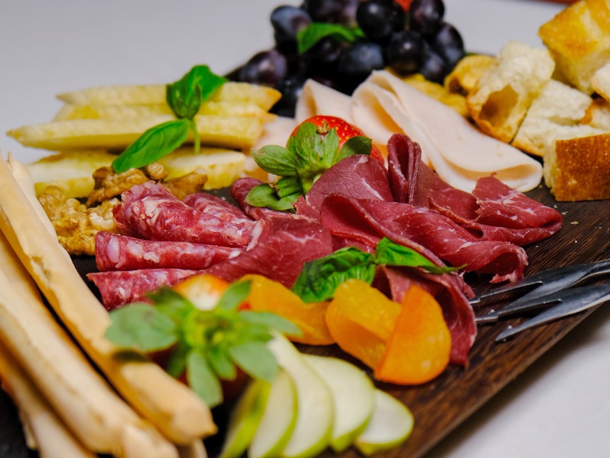 Ihr Fondue-Erlebnis wird von einer ausgewählten Auswahl an Köstlichkeiten ergänzt, darunter Bresaola, italienische Salami, Sauerteig-Croutons, Grissini, frische Birnen, rote Äpfel, verschiedene Trockenfrüchte und Trauben – alles perfekt zum Dippen. Zum süßen Abschluss des Abends gibt es noch Schokoladenfondue so viel Sie wollen – der ultimative Genuss.