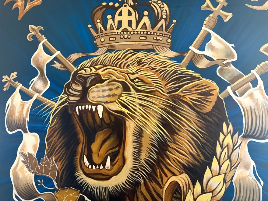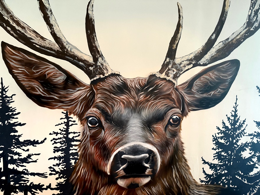 Auch hat ein Künstler schon typisch bayrische Motive wie einen wunderschönen Hirsch im Wandbereich geschaffen und natürlich gibt es auch einen bayrischen Löwen.