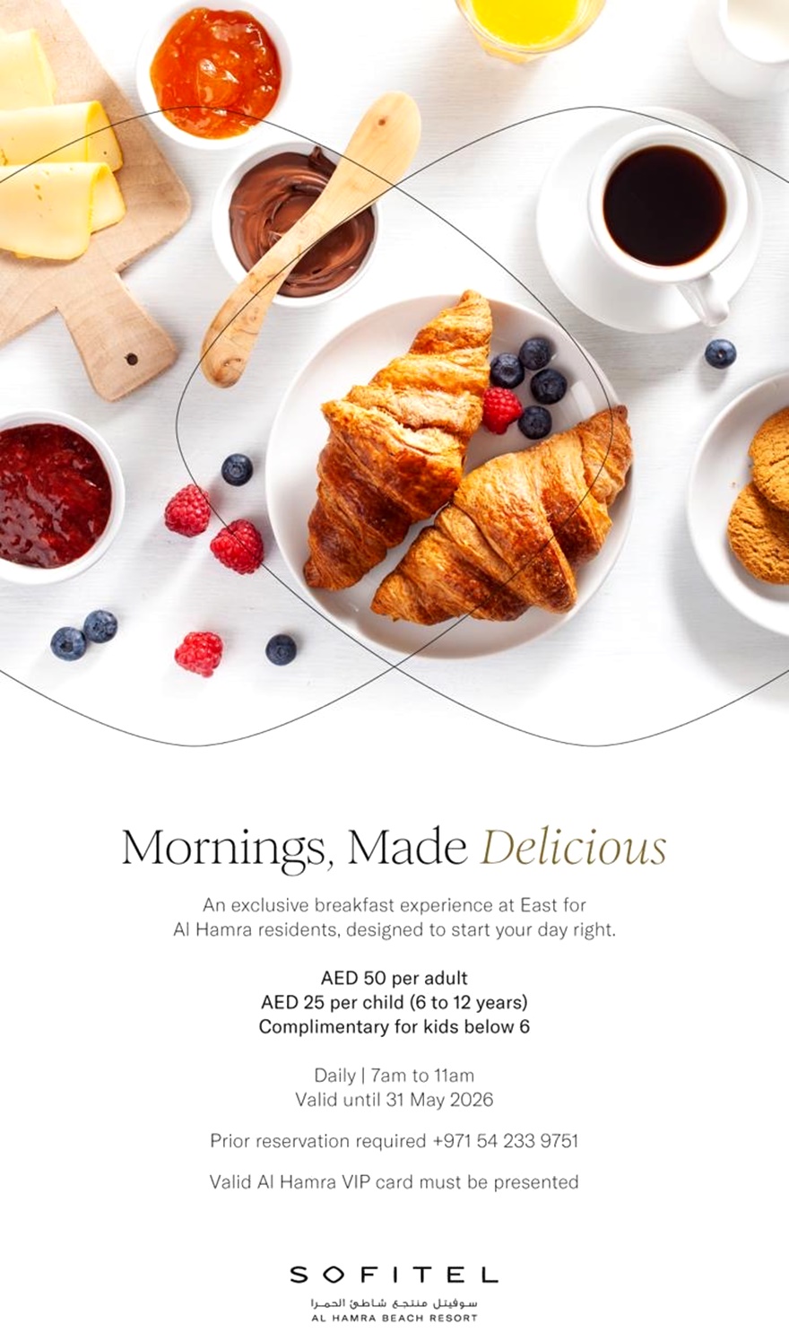 Erholen Sie sich vom Alltag am Pool und Beach des Sofitel Al Hamra Beach Resortmit dem exklusiven Day Pass für Al Hamra Residents mit VIP Card.