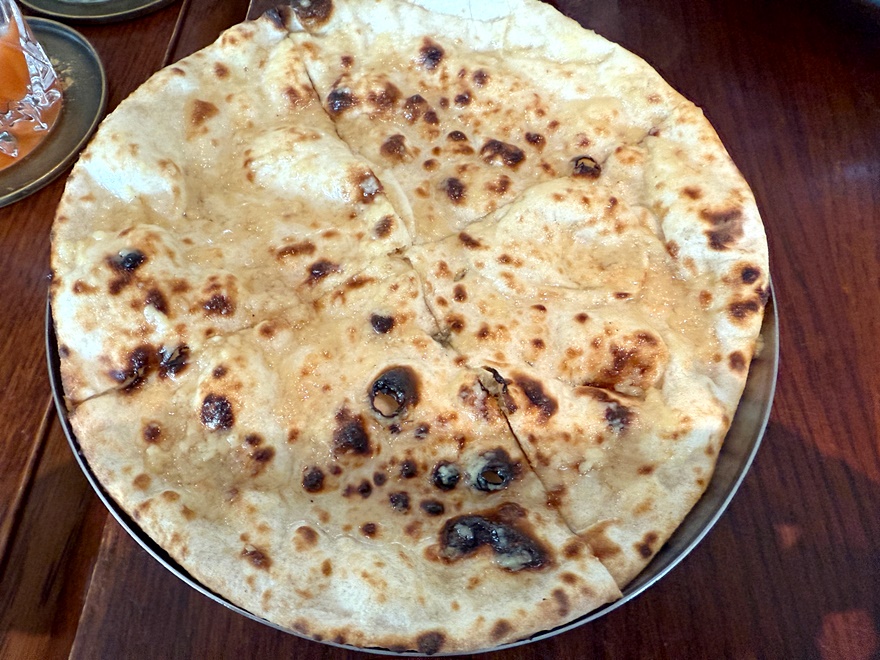 Dazu kam dann noch ein frischer Knoblauch-Naan auf den Tisch.
