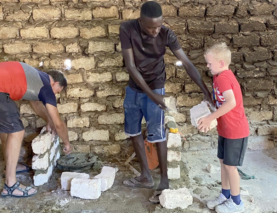 Die von Pfarrer Johannes im März 2023 organisierte Reise nach Kenia brachte drei Familien für einen einwöchigen Aufenthalt in dieses Land. Wir arbeiteten drei Tage lang freiwillig an der Green Garden Academy, einer örtlichen Schule. Gemeinsam bauten wir gemauerte Regale, die später Teil einer Küchenzeile wurden, sowie einen Ofen mit zwei Kaminen. Diese Verbesserungen erleichterten die Arbeit der Köchinnen erheblich, die täglich über 450 Kinder mit Mittagessen versorgen.