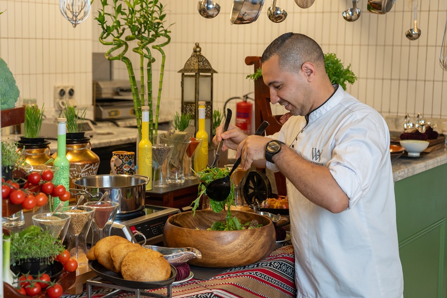 Begleiten Sie Chefkoch Hasan zu einem exklusiven, praktischen Meisterkurs in arabischer Küche im Qasr Al Bahar. Lernen Sie traditionelle Techniken kennen, entdecken Sie authentische Gewürze und bereiten Sie klassische Gerichte zu, darunter libanesisches Fattoush, Falafel und gegrilltes Hähnchen-Shish Taouk mit Vermicelli Reis sowie Umm Ali.