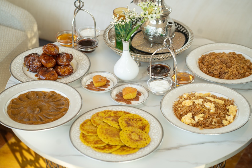 Erleben Sie die vielfältigen Aromen der VAE mit einem Nachmittagstee, der von den Traditionen der Emirate inspiriert ist. Genießen Sie beliebte lokale Köstlichkeiten wie Aseedah, Chabab, Balaleet und Luqaimat, serviert mit Dattelsirup, hausgemachtem Käse und duftenden Teesorten im Herzen der Camelia Lounge.