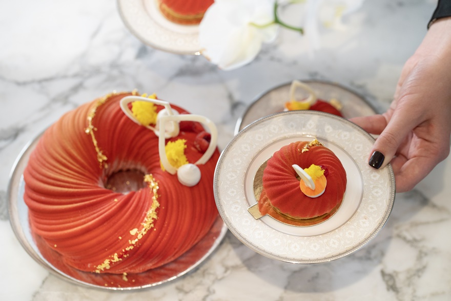 Feiern Sie das neue Jahr in der Camelia Lounge mit einem Himbeer-Zitronen-Bavarois auf Mandelbiskuit – einer luxuriösen Mischung aus spritziger Zitrone, schmackhafter Himbeere, reichhaltigem Mascarpone und seidiger weißer Schokolade – verfeinert mit elegantem 22-Karat-Blattgold. Leicht, erfrischend und unwiderstehlich elegant.
