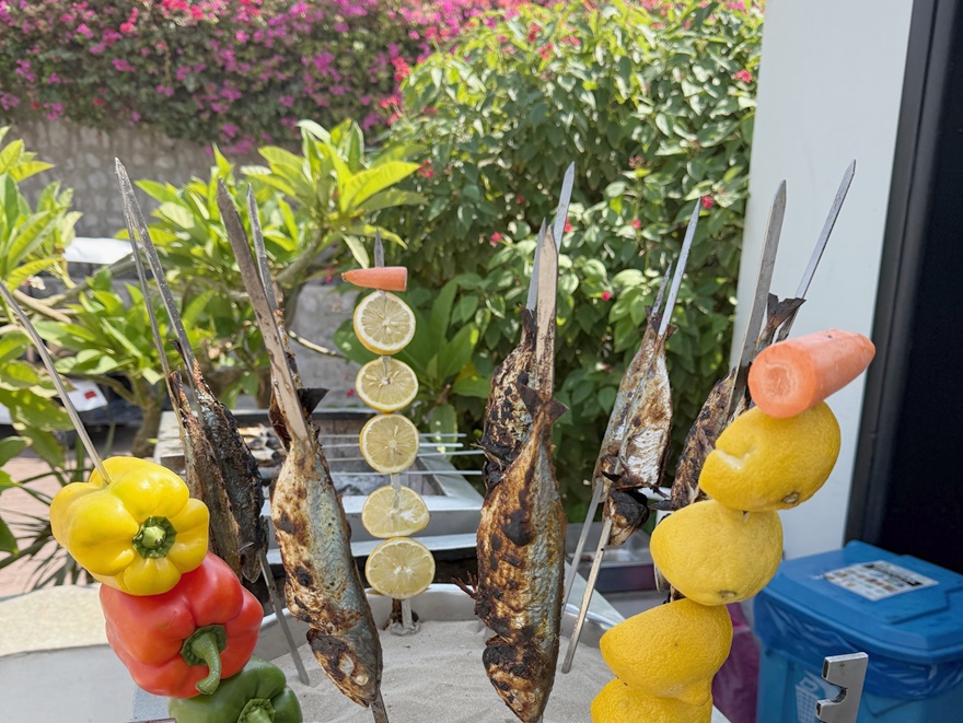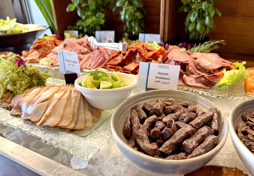 Gegenüber der offenen Küche des Basilico, wo am Counter einige arabische Spezialitäten wie Hummus und Moutabel auf die Gäste warteten, war eine große Auswahl an rohem Fisch und Schalentieren, sowie mehrere Fleischsorten aufgebaut, die man sich dann nach Wunsch zubereiten lassen konnte.