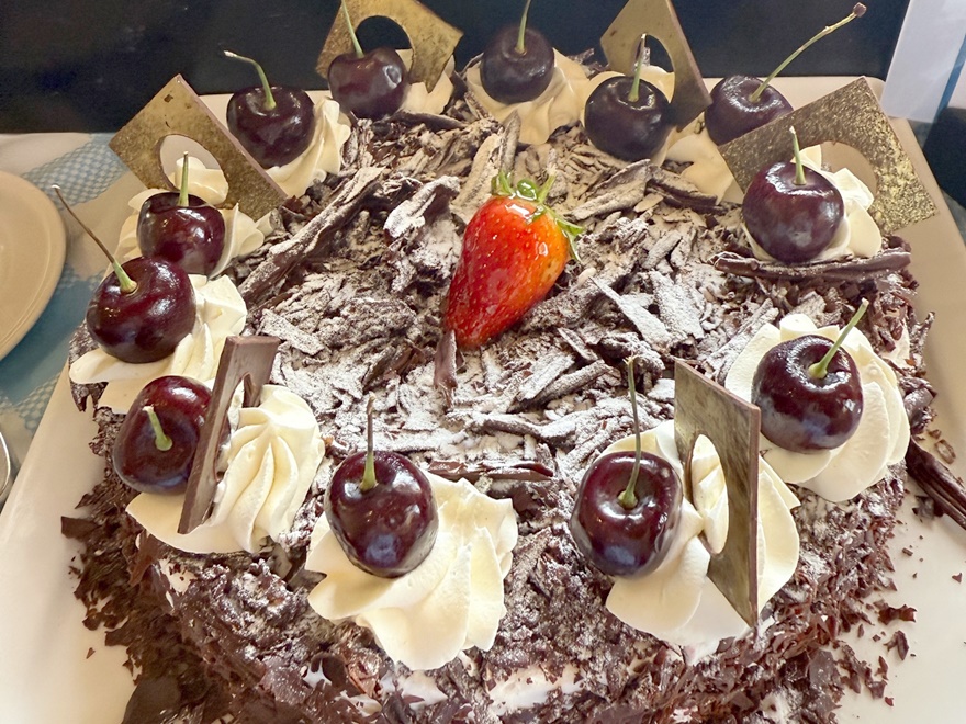 Bei den Desserts gab es zum Oktoberfest-Brunch neben vielen anderen Sweets eine Schwarzwälder Kirschtorte, in Fett herausgebackene Apfelstreifen – gemacht wie Apfelkücherl – mit Vanillesauce und sogar einen Kaiserschmarrn. Alles super gut zubereitet.
