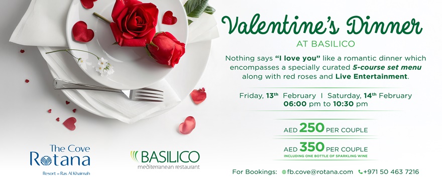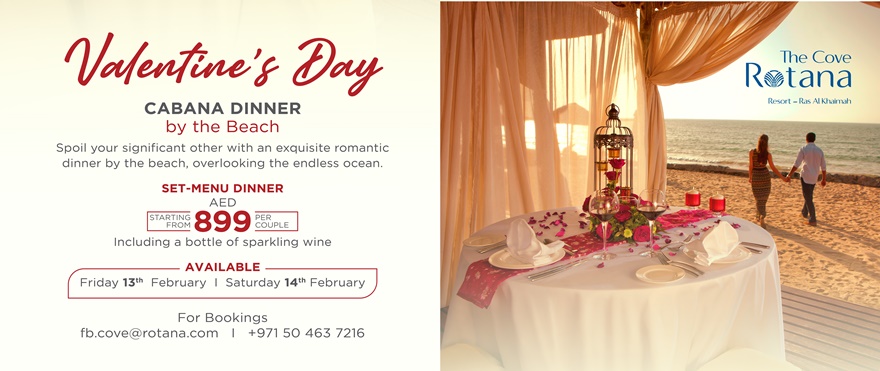 Der Valentinstag ist überall auf der Welt der Tag der Liebenden – auch in Ras Al Khaimah im malerischen Cove Rotana Resort.
